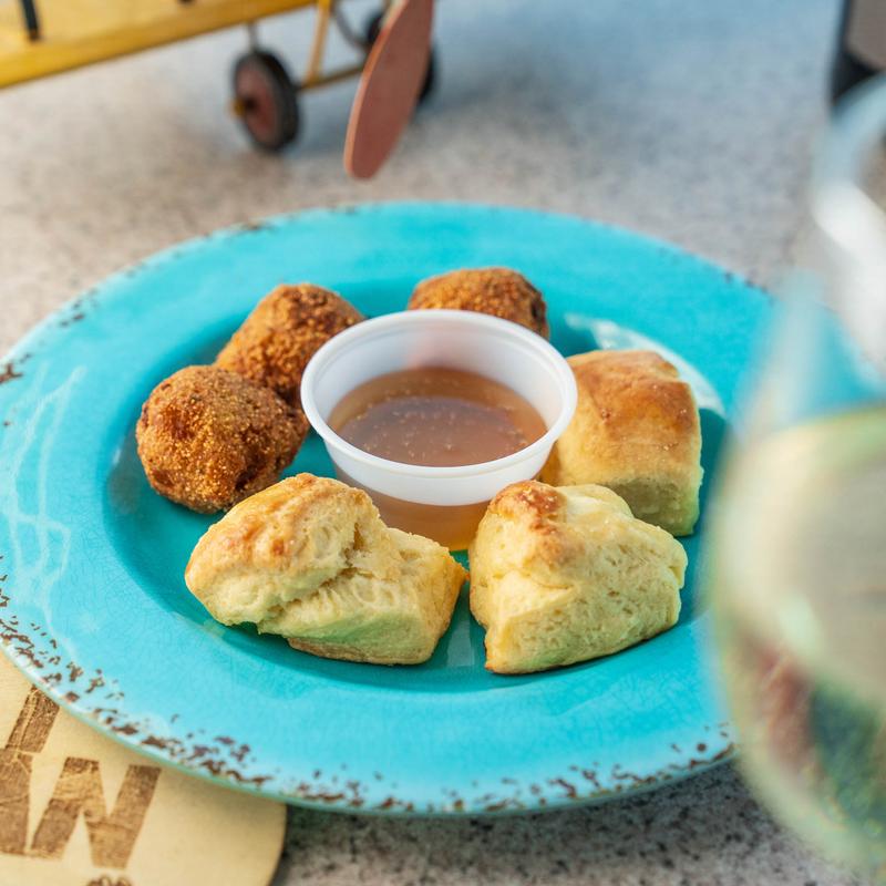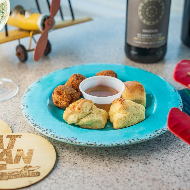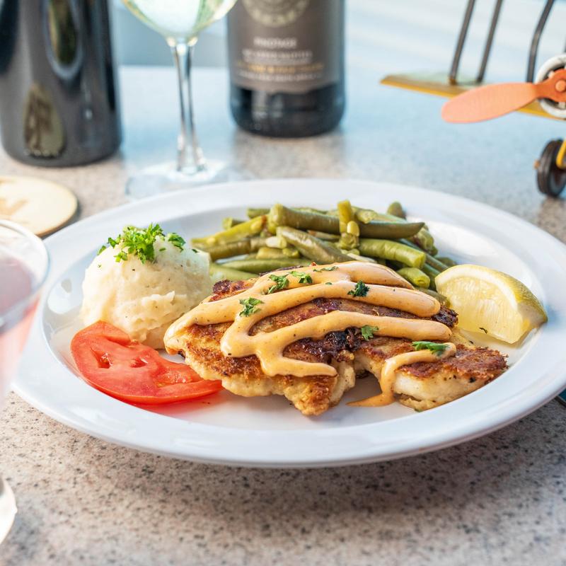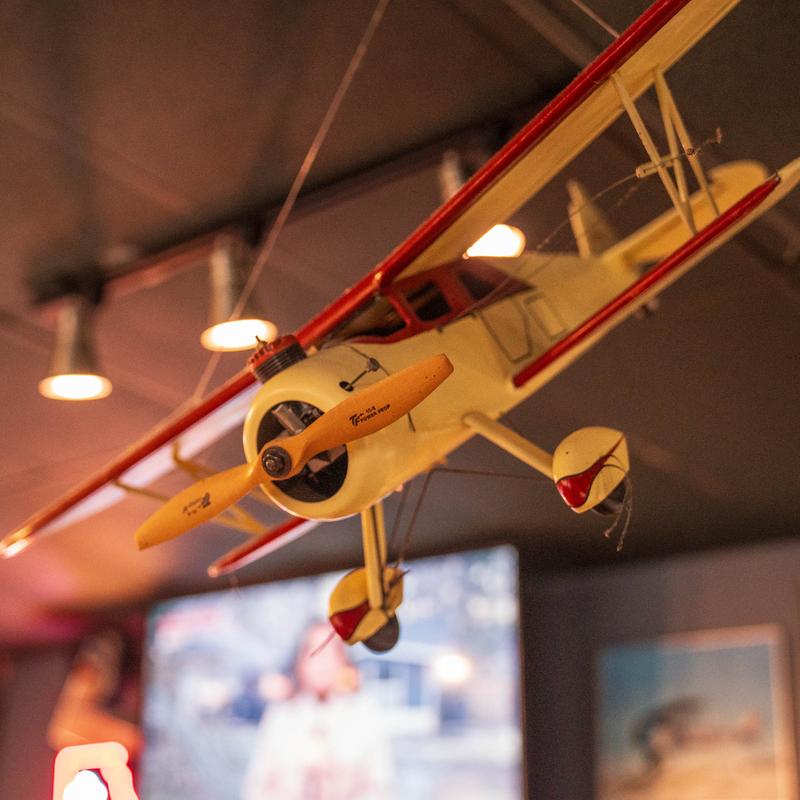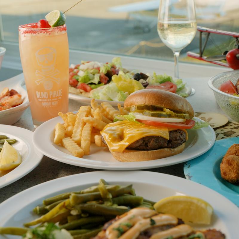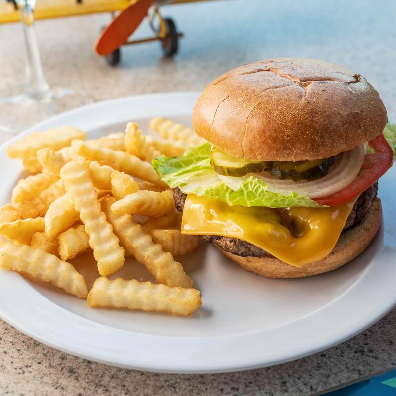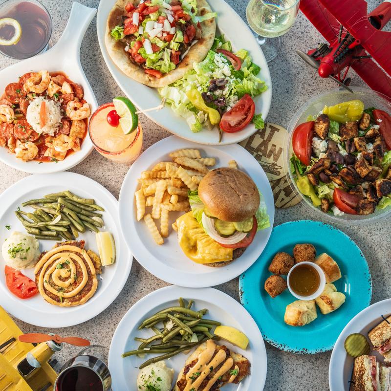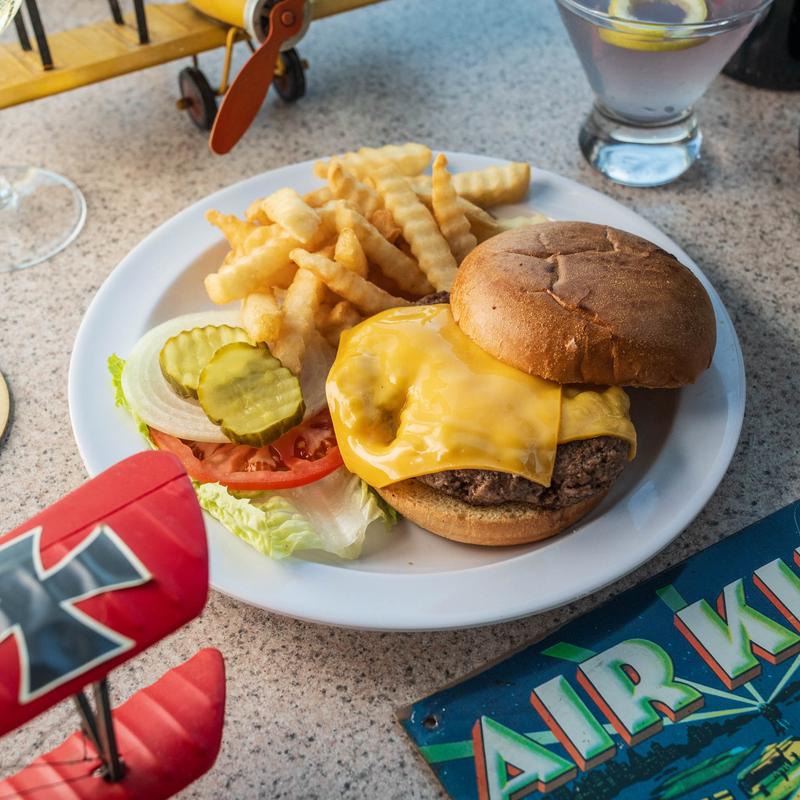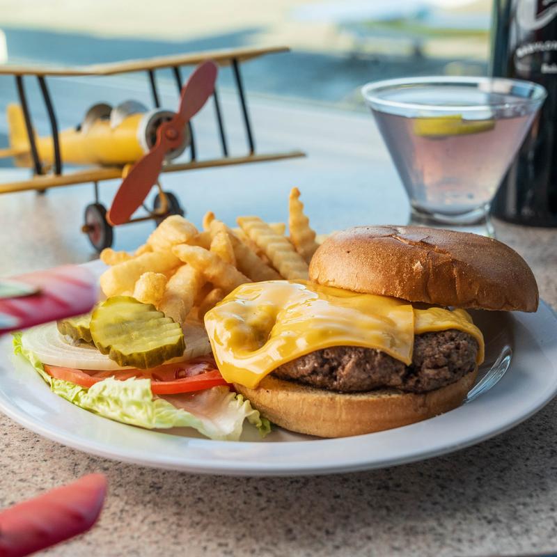 We serve classic American comfort food and drinks in a relaxed, aviation-inspired setting — complete with runway views. Great food, great atmosphere, and a front-row seat to the skies.