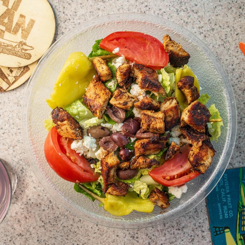Lettuce, tomato, feta, kalamata olives, and Greek pepper. Served with house Greek dressing.